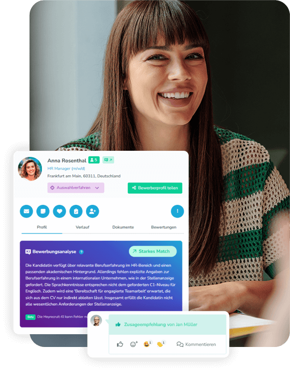 Heyrecruit ist so gestaltet, dass jede Rolle ohne Schulung produktiv starten kann. Klare Navigation, keine unnötigen Zwischenschritte und logisch gegliederte Stellen- und Bewerberansichten bringen dich schnell zu den Kernfunktionen. Du wählst, wie du arbeitest: Liste oder Pipeline, gruppiert nach Stelle, Standort oder Status – mit Filtern und gespeicherten Ansichten. Das spart Klicks, reduziert Fehler und sorgt für Tempo, das im Alltag wirklich ankommt.