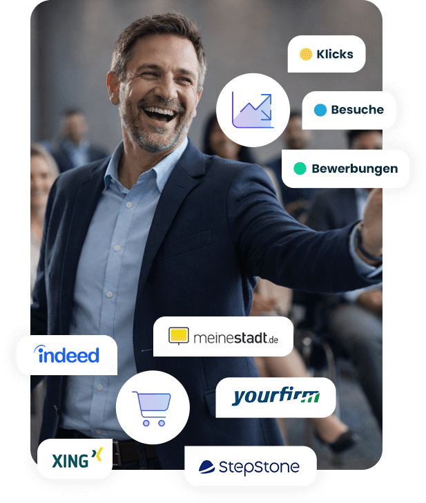 Mit unserer großen Auswahl an kostenlosen Kanälen kannst du alle deine Stellenanzeigen auf über 20 Kanälen gleichzeitig posten, ohne dafür einen Cent zu bezahlen. Auf diesem Weg erreichst du monatlich kombiniert mehr als 10 Millionen aktive Jobsuchende. Wir bieten dir Zugang zu den führenden Portalen, darunter die Bundesagentur für Arbeit, Indeed, LinkedIn, Google for Jobs und Facebook.